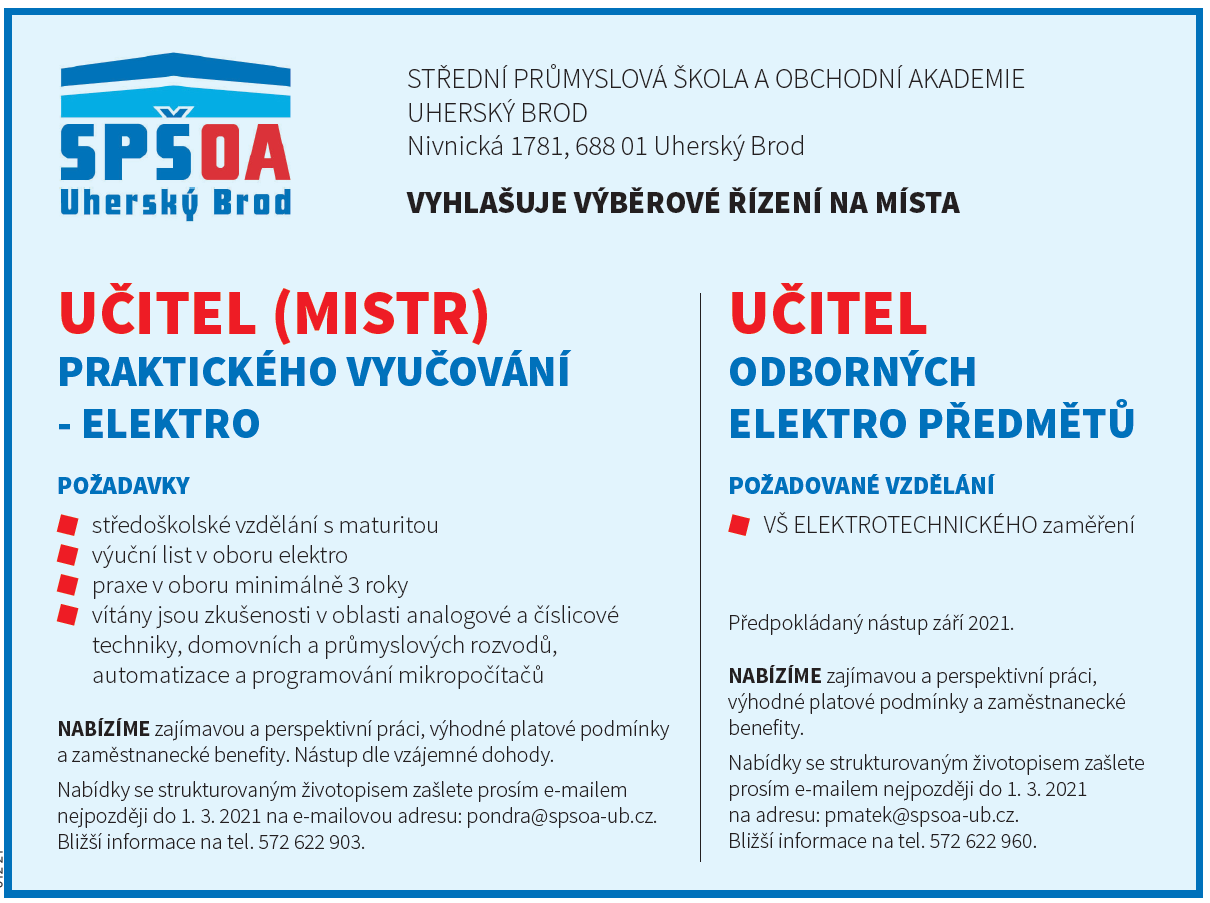 NOVĚ! Informace o nekonání jednotné přijímací zkoušky pro obory: Strojírenství, Mechanik elektrotechnik, Podnikání a Sociální činnost. V souladu s Opatřením obecné povahy, vydaným Ministerstvem školství, mládeže a tělovýchovy Č. j.: MSMT-43073/2020-3 rozhodl ředitel školy pro následující obory …