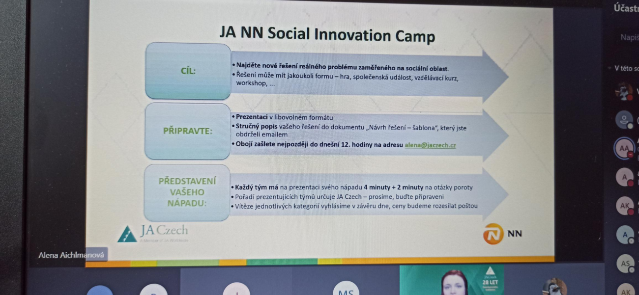 Dobrý den/ahoj, jsme studenti třetího ročníku oboru sociální činnost a pravidelně se účastníme soutěží od JA. Soutěž spočívá v tom, že se ráno v den soutěže dozvíme téma, na které musíme vymyslet inovativní projekt, jenž by vyřešil …