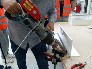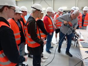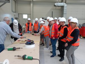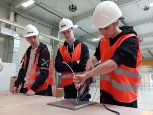 Opět se nám podařilo skloubit teorii s praxí, protože kluci právě ve strojírenské technologii probírají zpracování a svařování plastů. Díky průvodcům z výrobního oddělení, panu Smetanovi a Machalovi, jsme se velmi podrobně seznámili s celou technologií výroby, od plánování zakázky, přes konstruktérskou práci, přípravu desek obráběním na CNC strojích, tvářením za tepla, skladováním a evidencí materiálu a polotovarů. Především jsme se detailně seznámili se všemi způsoby svařování plastů, od svařování desek polyfúzním svařováním na svařovacím automatu tzv. „zrcadle“ přes svařování horkým vzduchem za pomocí nahřátého svařovacího drátu až po svařování extrudérem. Poslední dvě technologie jsme si na závěr mohli vyzkoušet na vlastní kůži. Pod rukama našich žáků vznikala přímo umělecká díla a ti nejlepší dostali okamžitou nabídku na pozici svářeče.