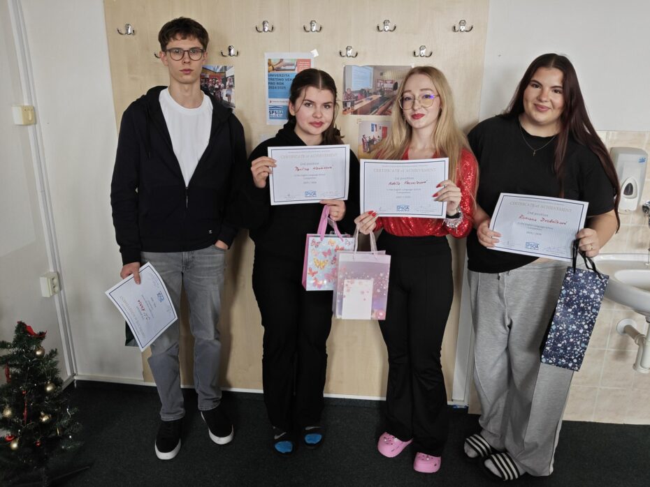 Školní kolo olympiády z AJ, kde žáci předvedli své konverzační dovednosti, proběhlo 27.11.2024 a má své vítěze ve dvou kategoriích: