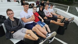 Z posledního dne byla nejlepší plavba velkou lodí po Vltavě. I přes nepříznivé počasí jsme obsadili horní palubu, mávali jsme turistům a museli jsme využít příležitosti a na přídi jsme si zahráli scénu z filmu Titanic.