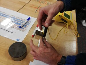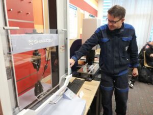 O názorné ukázky měření pevnosti a tvrdosti materiálů jsme poprosili pana učitele Urbánka, který formou poutavého výkladu na názorných příkladech vysvětlil žákům mimo jiné chování různých materiálů při tahovém namáhání, ale i to, že ne všechny těžké kovy jsou tvrdší a pevnější než ty měkké.