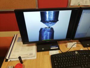 Moderní technické vybavení naší školy nám umožňuje zahrnout praktické ukázky i do výuky teoretických předmětů. Přesvědčili se o tom naši prváci oboru strojírenství, kteří v předmětu strojírenská technologie právě probírají zkoušky mechanických vlastností materiálů.